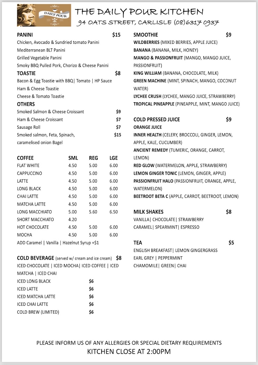 If you're in search of a cozy cafe experience on Oats Street, look no further than The Daily Pour Kitchen in Carlisle, WA. This delightful spot is a true gem for food lovers and coffee enthusiasts alike, with a menu that promises a little something for everyone.